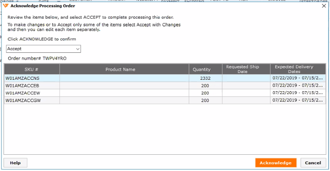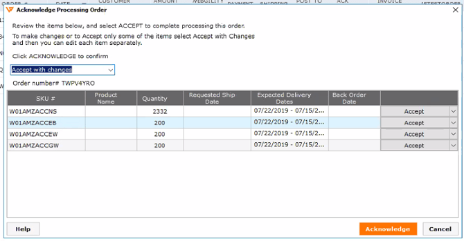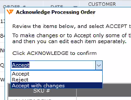 When you select Accept with changes the screen will shift and there will be a new drop-down menu next to each item on the PO.​