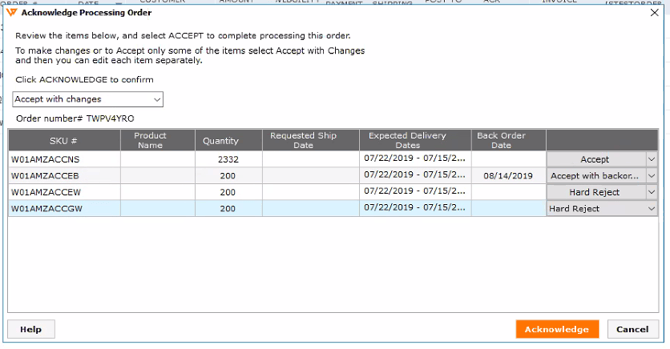 Once you have finished modifying your response to the trading partner, click Acknowledge.