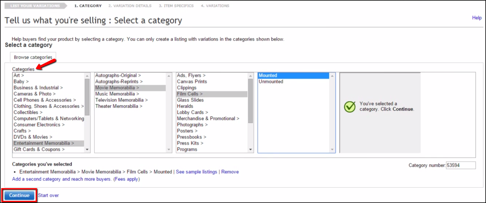 3. Assign to a category and click Continue.