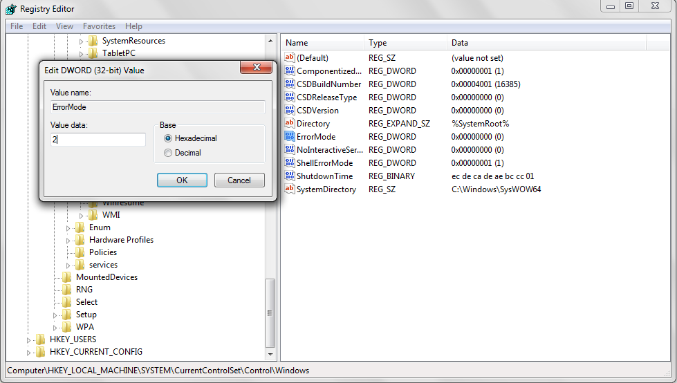 Microsoft recommends that you set the following registry key to avoid the chance of receiving messages. You have to go to the regedit from the run prompt: HKEY_LOCAL_MACHINE\SYSTEM\CurrentControlSet\Control\Windows\ErrorMode Value = 2