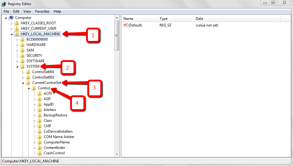 1. Select the HKEY_LOCAL_MACHINE folder.