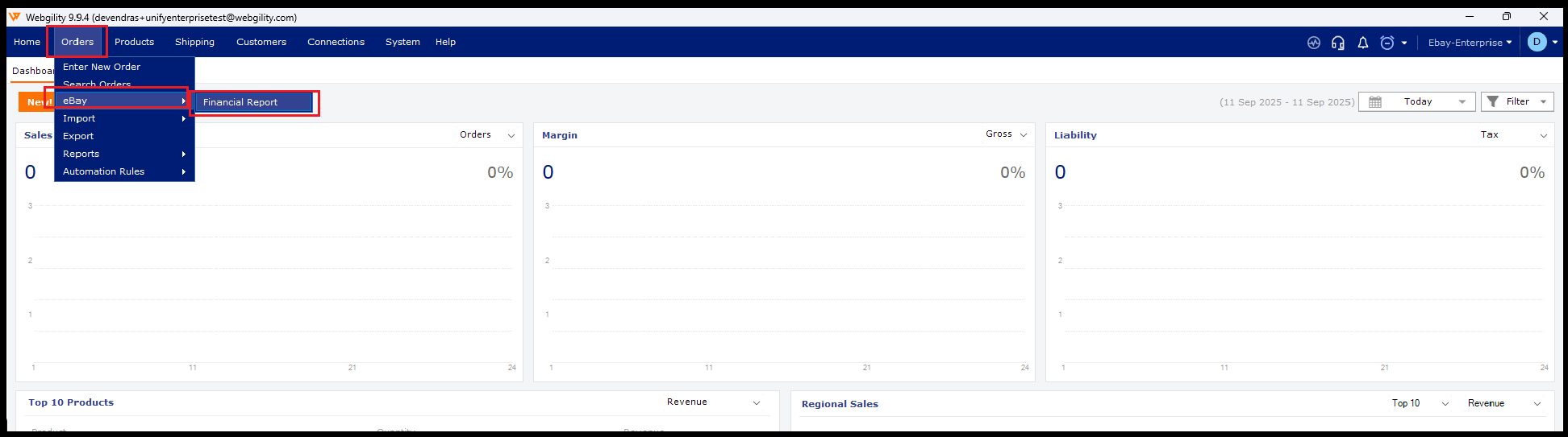 1. In Webgility Desktop navigate to Orders > eBay > Financial Report.