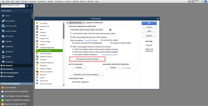 How to Enable Advanced Inventory in QuickBooks Enterprise