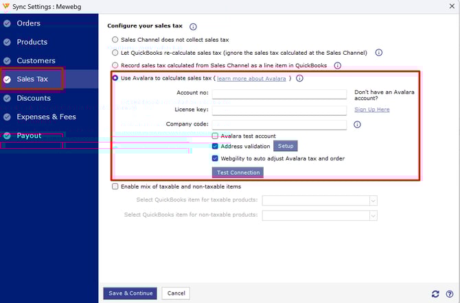 Note: mapping tax codes to products using Webgility is optional. Tax code mapping should be done within the active company in the Avalara AvaTax account as tax code mapping in Webgility does not import or transfer into Avalara AvaTax.