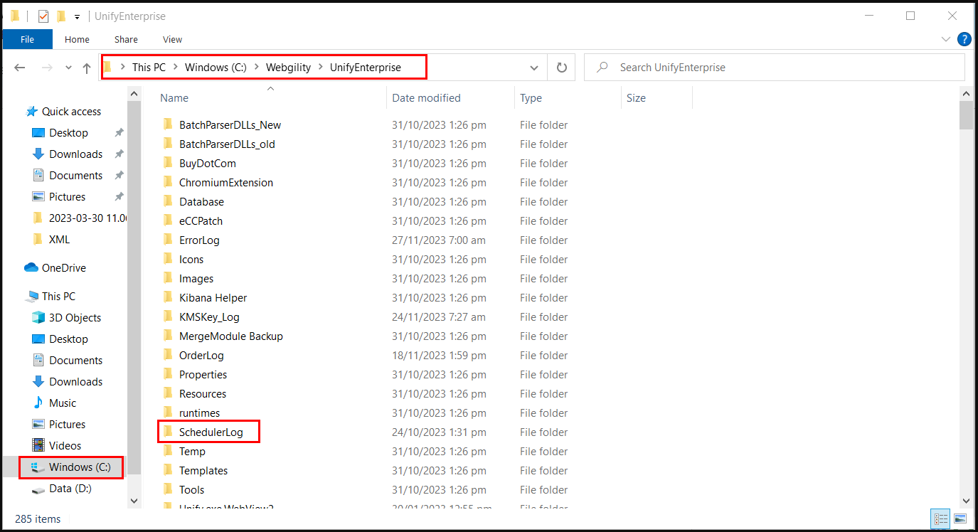 3). Review the Scheduler logs in the local disk at the specified location: C:\Webgility Desktop\UnifyEnterprise\SchedulerLog. In case of errors, such as missing items in QuickBooks Desktop or communication issues between Webgility Desktop and QuickBooks Desktop, orders may persist in the Scheduled tab. Address these errors first and then restart the Scheduler. How to Start or Stop the Scheduler