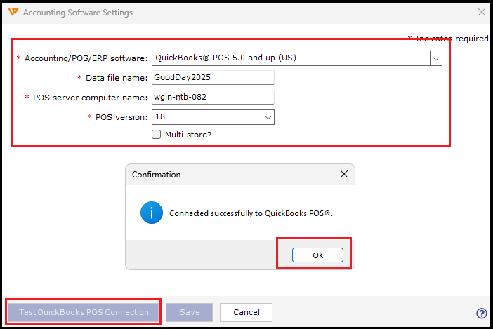 4. Now, try to connect. You should be able to successfully connect to your POS company file.