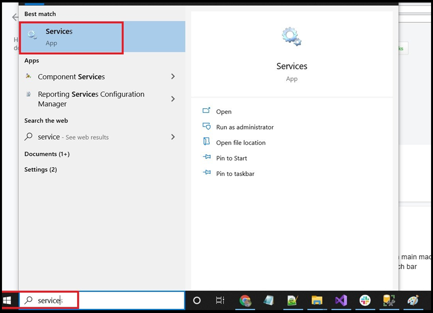 - In the Windows search bar, search for Services, then click Return on your keyboard.