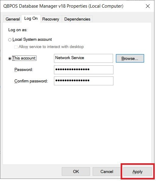 3. If you confirm the correct information, but are still facing a connection issue, verify that the QuickBooks POS database server services are up and running.