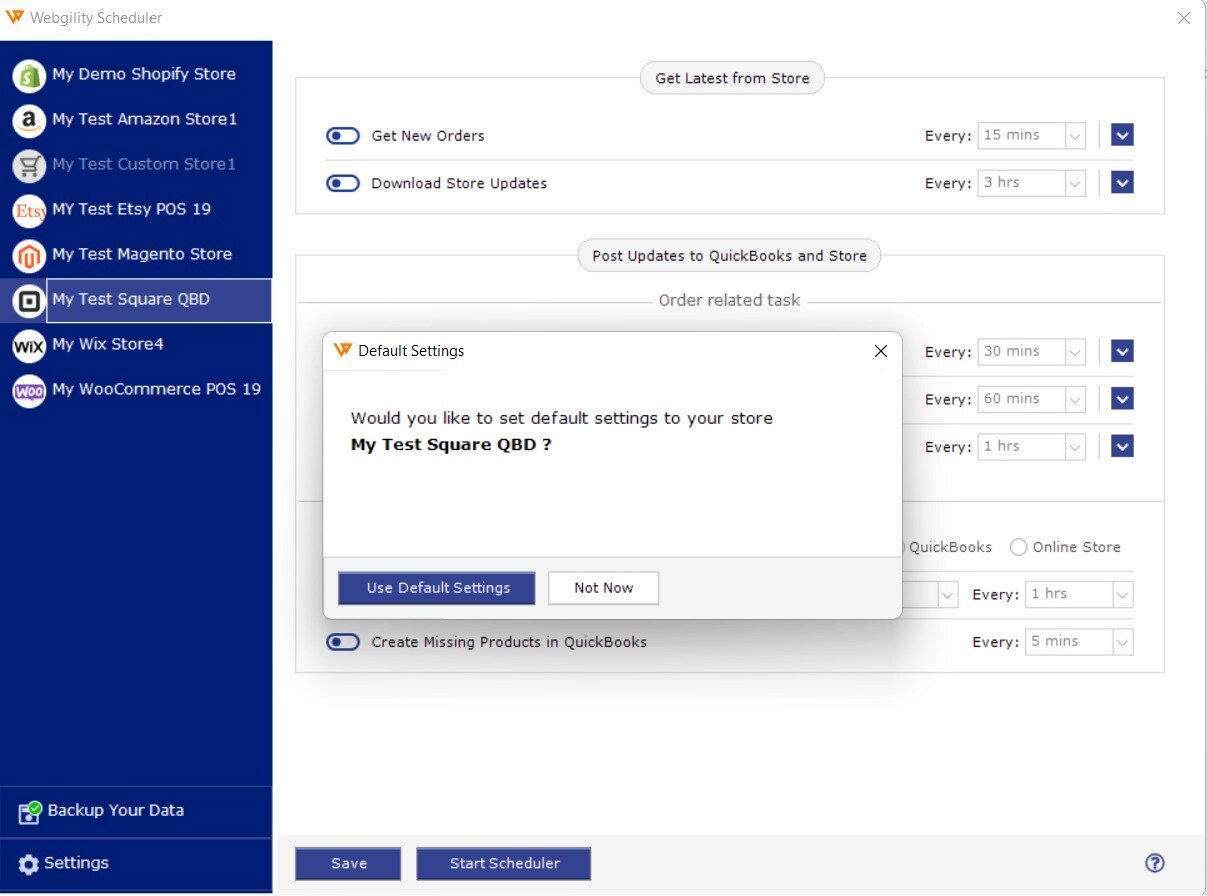 Upon opening the scheduler for the first time, users will be be prompted with an option to use Default Settings for quick setup