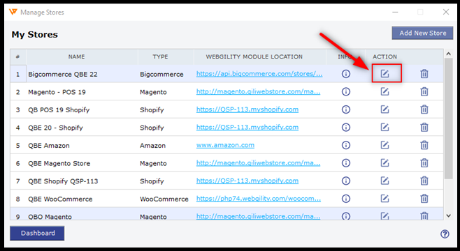 2. On the next screen, click Edit for the sales channel that you want to update the address for.