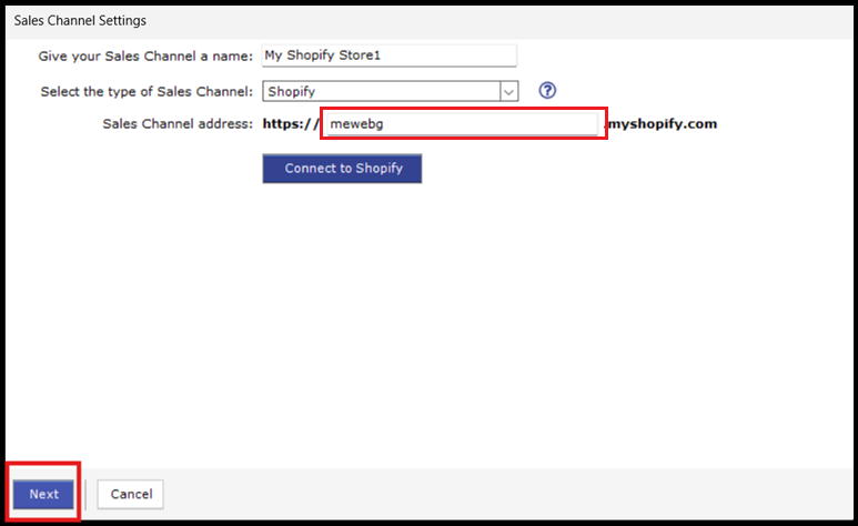 3. Update your Sales Channel address URL and then click Next at the bottom left corner of the screen.
