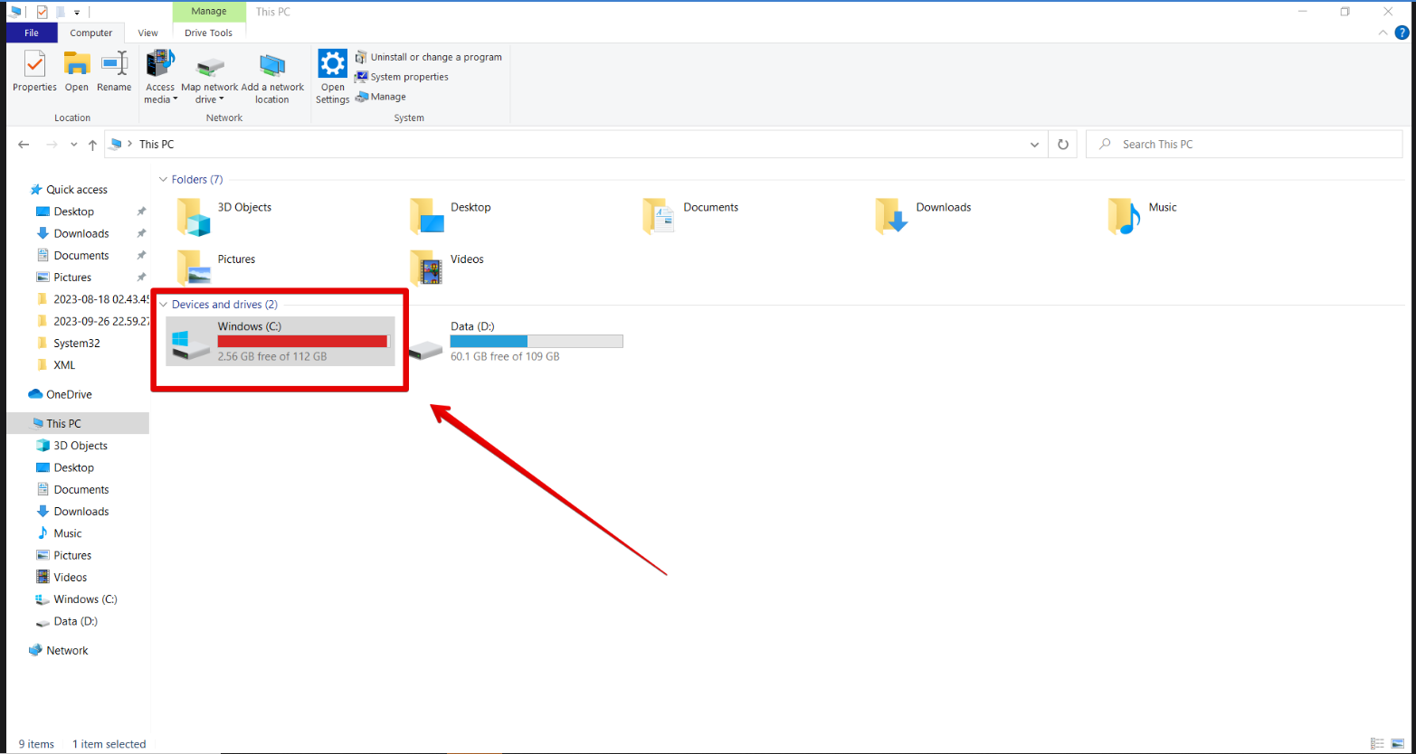 The space in the C: drive should be available for an optimized performance. To check, go to This PC and check the available disk space.