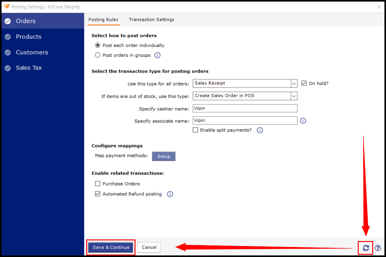 3. To refresh the posting settings in Webgility, please follow these steps: