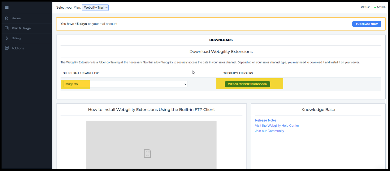 3. Select the Store Type and download the Webgility Extension.