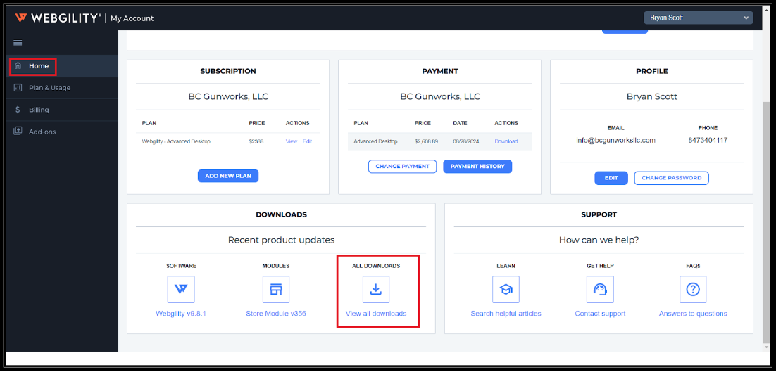 2. Download the Webgility Extension from your Webgility account portal and log in to https://portal.webgility.com/ go to Home > View all downloads