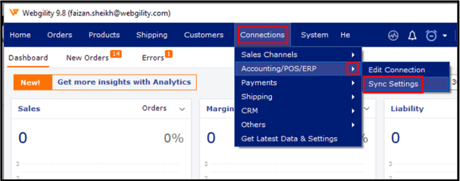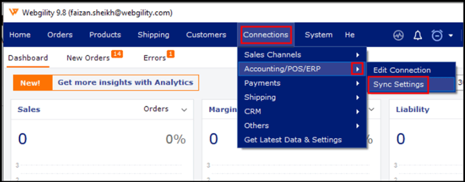 If you have just added a new sales channel, you will be taken to the Sync Settings by default. You can also get there by navigating to Connections > Accounting > Sync Settings