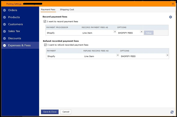 If you are using Shopify or a marketplace like eBay or Amazon, you will see a section for Expenses and Fees. Expenses and fees are best set up with a Webgility Desktop Onboarding Specialist.