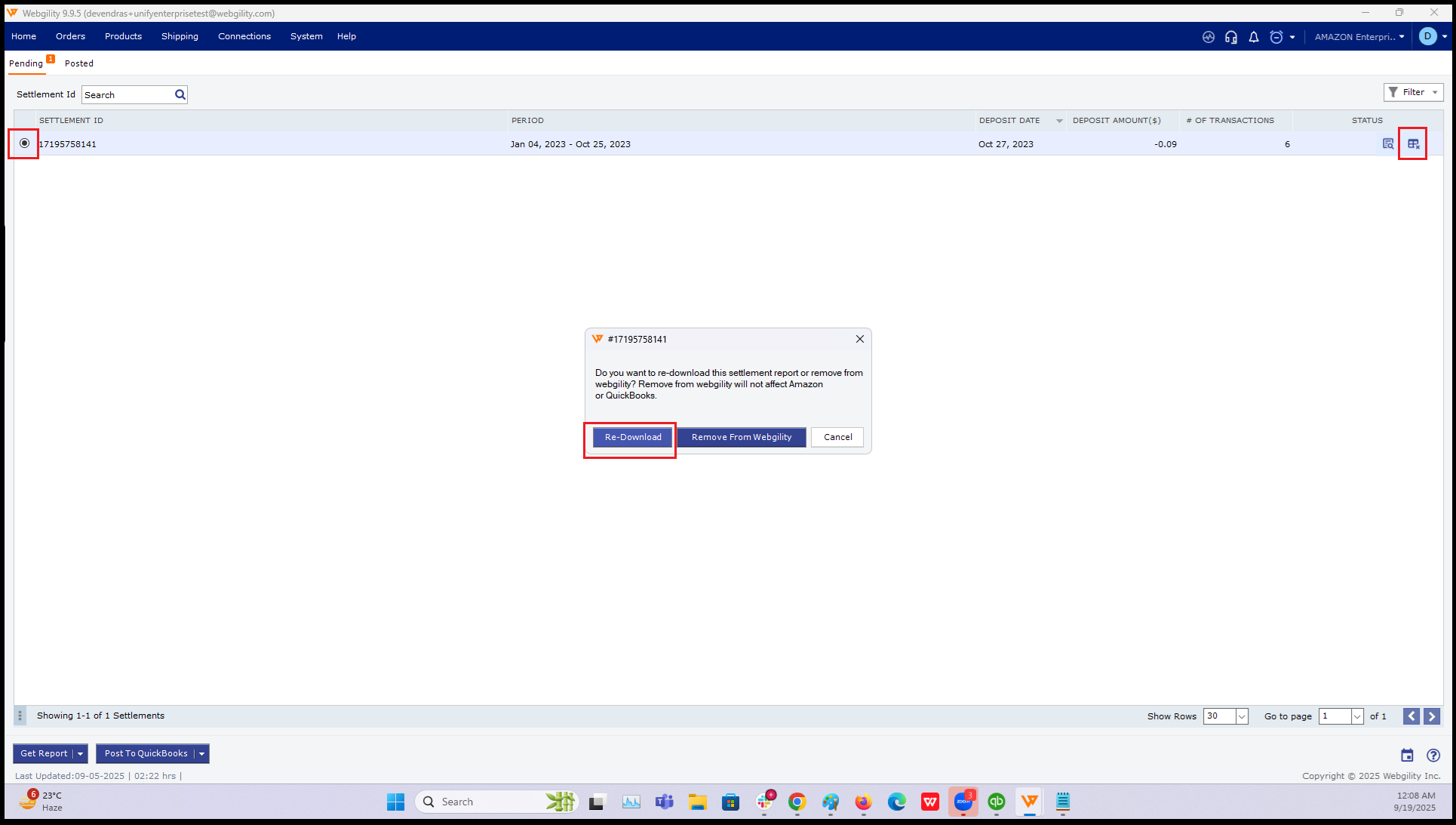 Re-download the settlement report in Webgility Desktop.