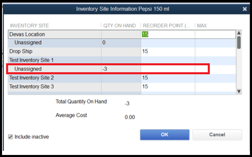 Note: If the quantities are not available in the mapped inventory site, Webgility Desktop will check the default inventory site. If the quantities are not available in the default inventory site as well, it will create a negative entry and record it in the Unassigned inventory site.