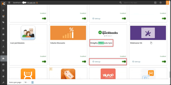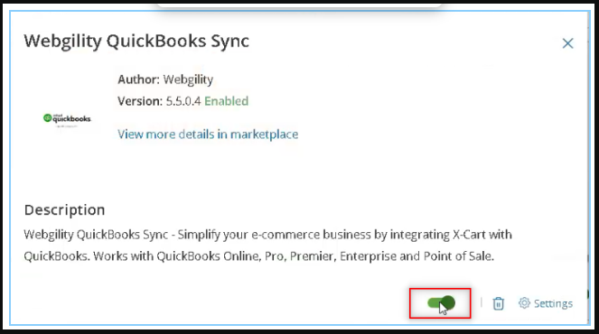 Enable the Webgility Desktop app for X-Cart, then open Settings.