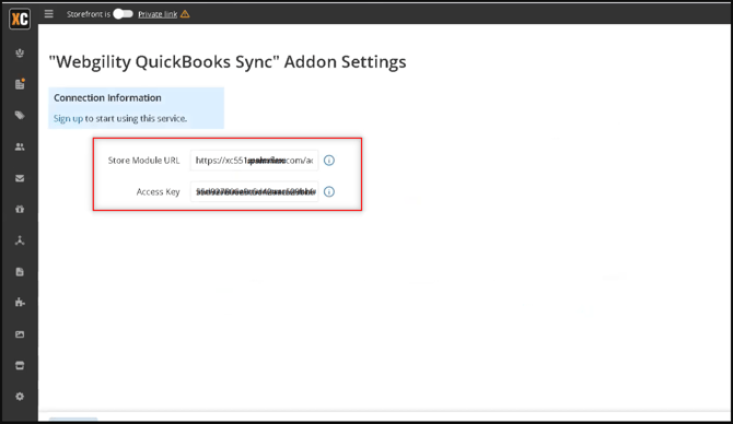 Next, you’ll be asked to provide the Webgility Extension URL, admin username, and Access Key.