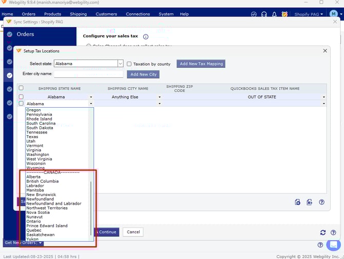 Now you will see the Canadian state names to map with QuickBooks sales tax items under the dropdown.