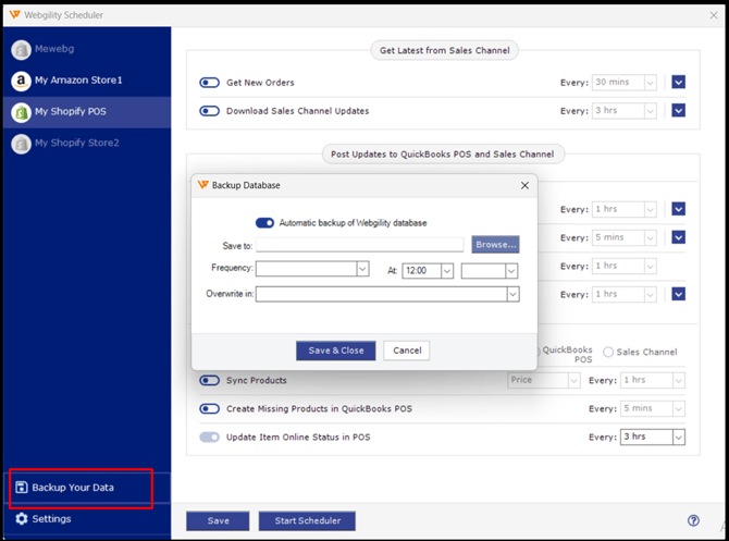 Enable automatic backups of your Webgility Desktop Database.