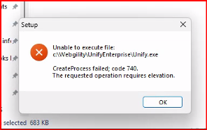Unable to execute file C:\Webgility\UnifyEnterprise\Unify.exe