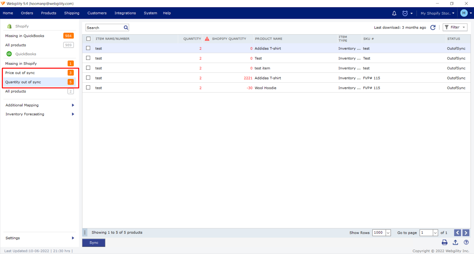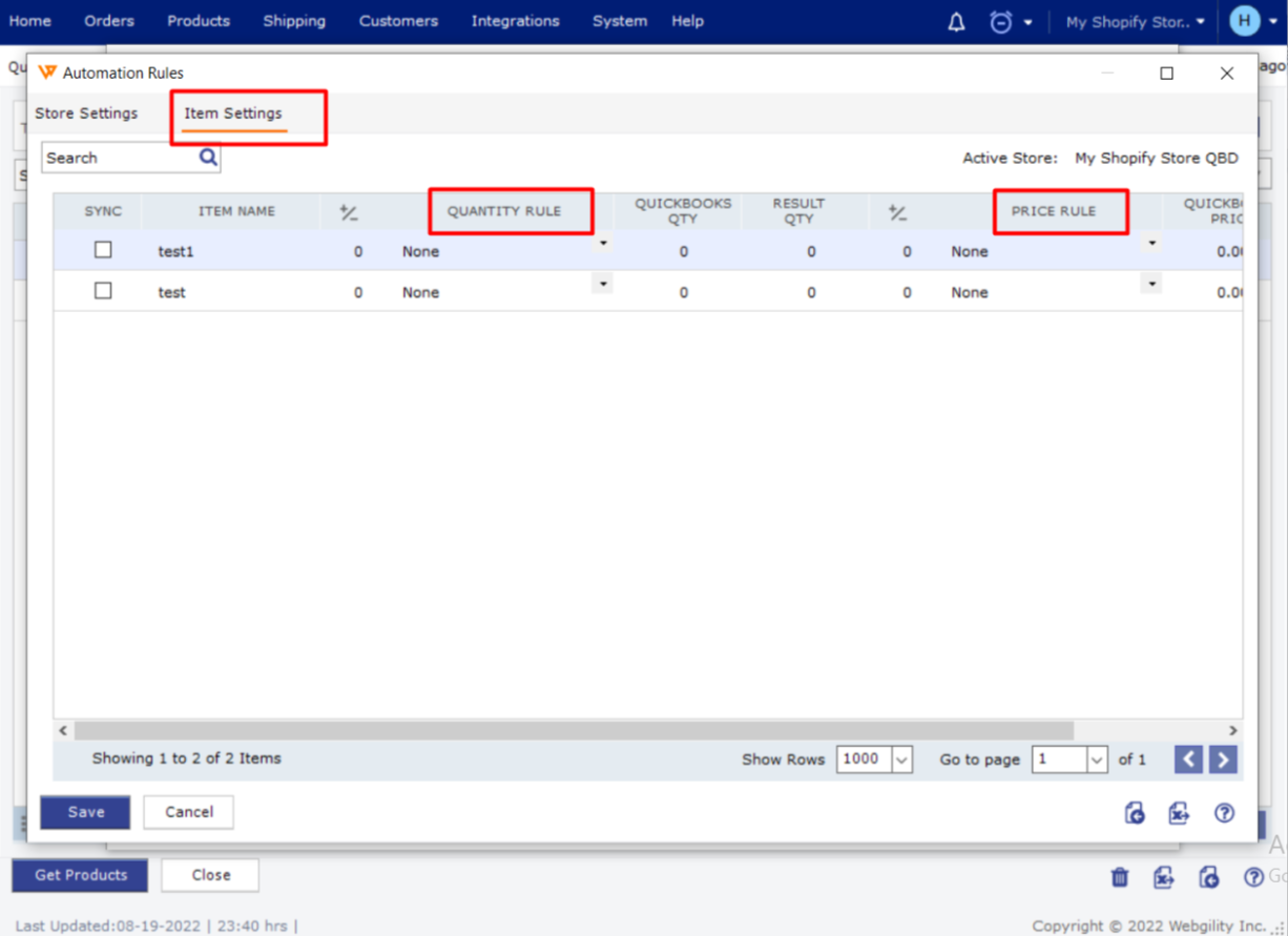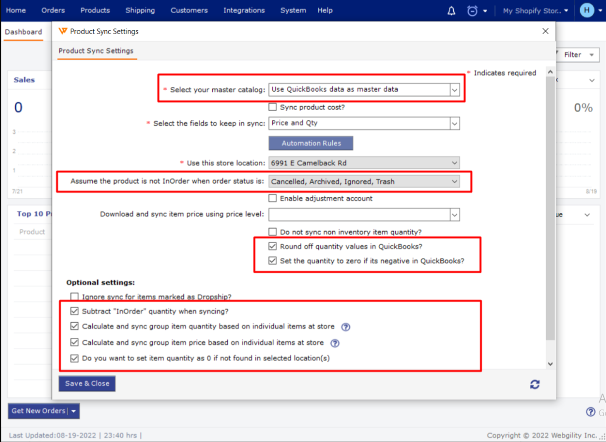 Note: If item Packs are defined in Webgility, we need to check if the item quantity is getting calculated for sync according to the item pack defined.