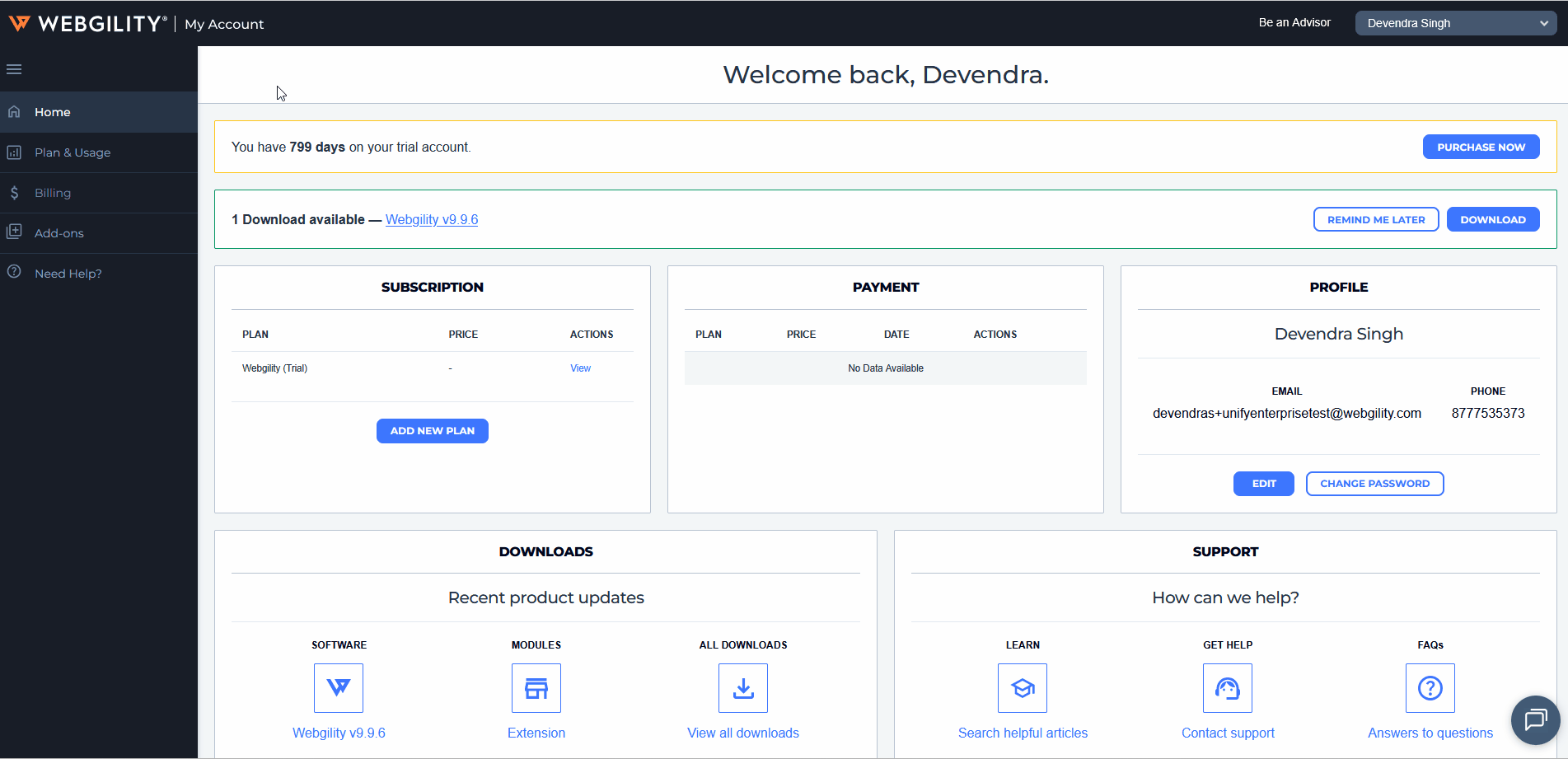 - For updating the Webgility Extension go to the Webgility Portal and log in with your credentials. Once logged in, under the "Downloads" section click on the Module symbol. Once done then look for the latest version of the Webgility Extension and compare it with the one you are using. If an update is available, download and install it to ensure your Webgility Extension is current and bug-free.