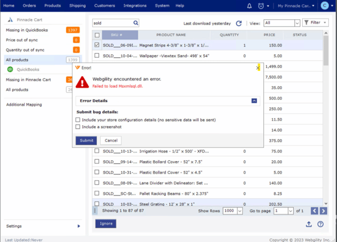This article helps Webgility Desktop users resolve the error message “Failed to load msxmlsql.dll,†which occurs when the application is unable to locate or load a required Dynamic Link Library (DLL) file. The msxmlsql.dll file is essential for database connectivity, and when it is missing, corrupted, or improperly registered, Webgility Desktop may fail to start or operate correctly. The article provides troubleshooting steps to identify the cause, restore or register the missing DLL file, and ensure proper functionality of the Webgility Desktop application.