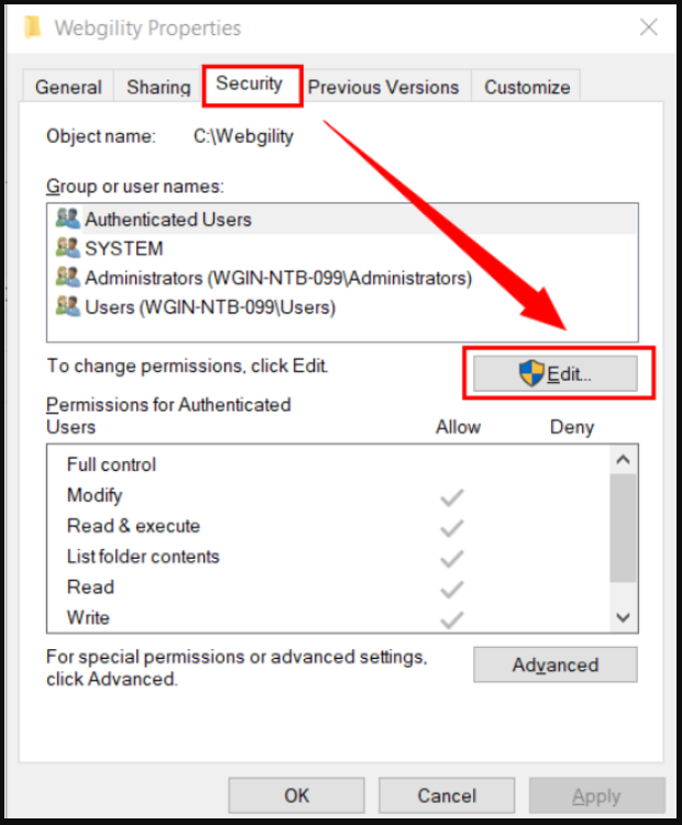 4. Click on the "Edit" button to change permissions.​