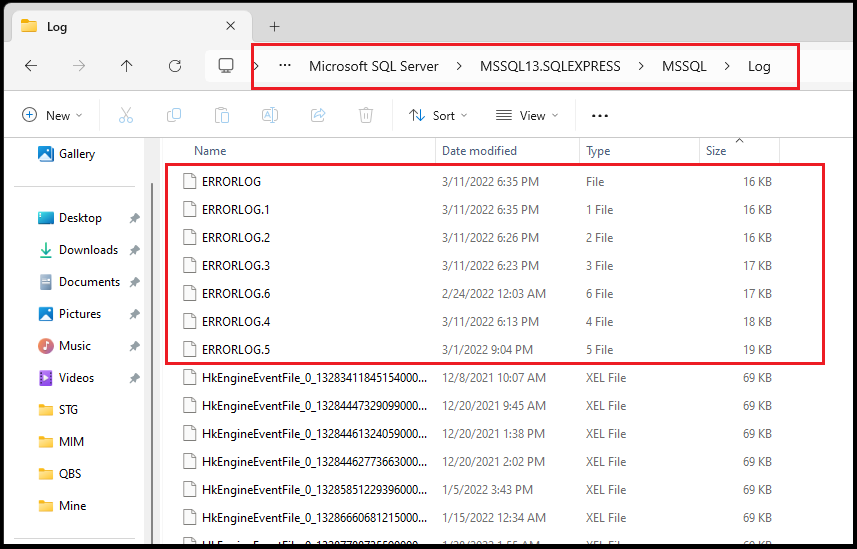 Open the "Logs" folder and delete any unnecessary SQL logs. Please delete the highlighted SQL logs only.