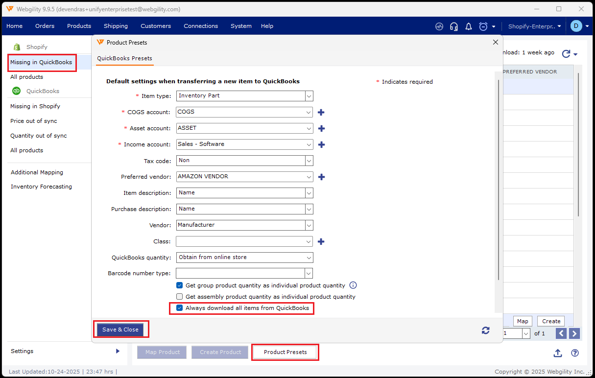 1. First, we need to ensure that Webgility Desktop is connected with your QuickBooks. Please refer to the help article below to check the QuickBooks connection with Webgility Desktop: