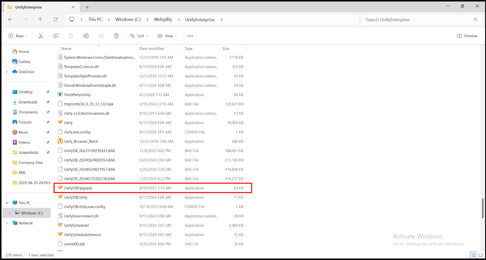 6. After completion, close Webgility Desktop completely. On the new machine, go to the folder location “C:\Webgility\UnifyEnterprise,†find the file named “UnifyDBUpgrade,†run it once, and wait for a success popup. Once finished, log in to Webgility Desktop on the new machine.