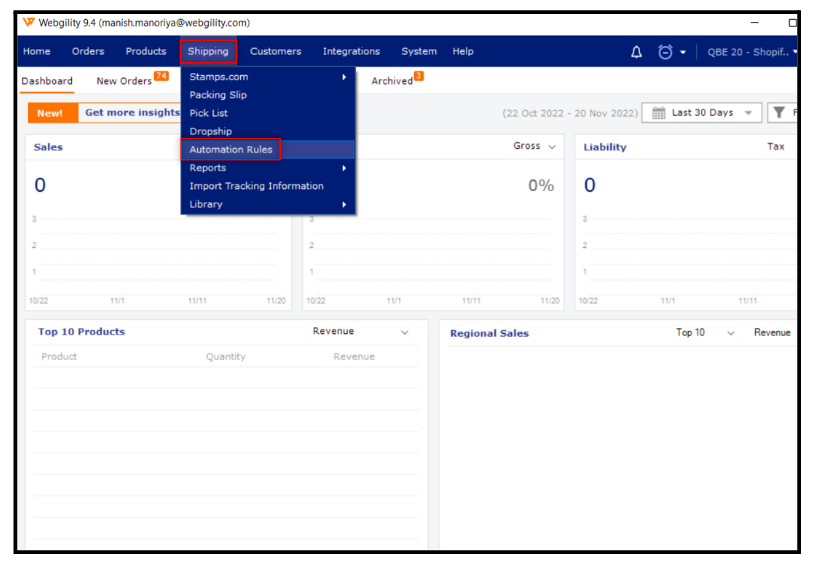 Click on the Shipping tab and then click on the Automation Rule.