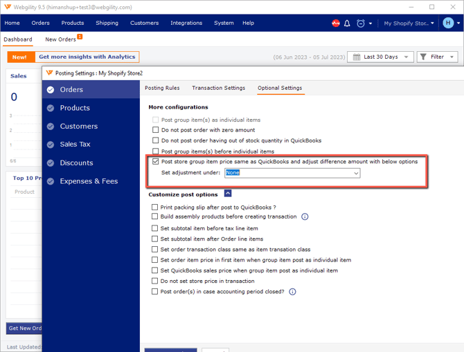 2). If the issue persists, check the group item posting settings from Connections > Accounting/POS/ERP > Sync Settings > Orders > Optional Settings.