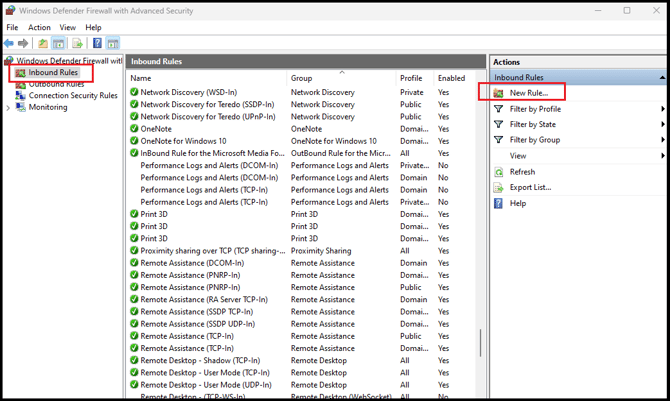 1). In Inbound Rules, click on New Rule.