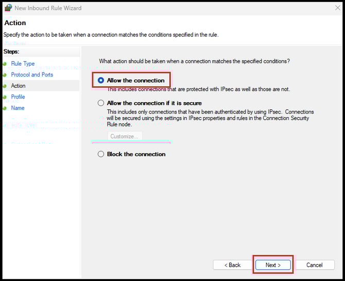 Choose Allow the connection, then click Next.