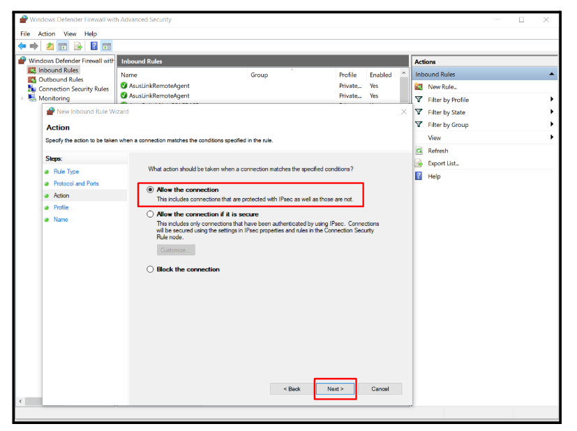 4). Choose Allow the connection and click Next.