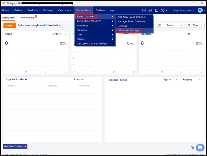 2). Now navigate to Advanced Settings by following Connections and then Sales Channels and click on Advanced Settings