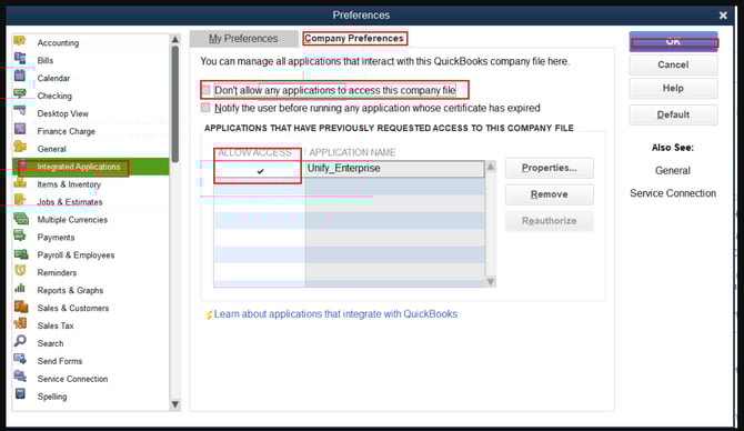 This article helps Webgility Desktop users integrated with QuickBooks Desktop resolve the error: “Webgility encountered an error due to recent changes to your configuration. You (The QuickBooks Administrator) are required to go into the integrated applications preferences and re-authorize your integrated application to log in automatically.†This issue typically occurs when QuickBooks Desktop’s integrated application settings require re-authorization for Webgility Desktop, often after software updates or changes to user permissions.