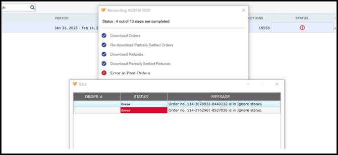 Error while posting Amazon Settlement Report - Order no. is in ignored status