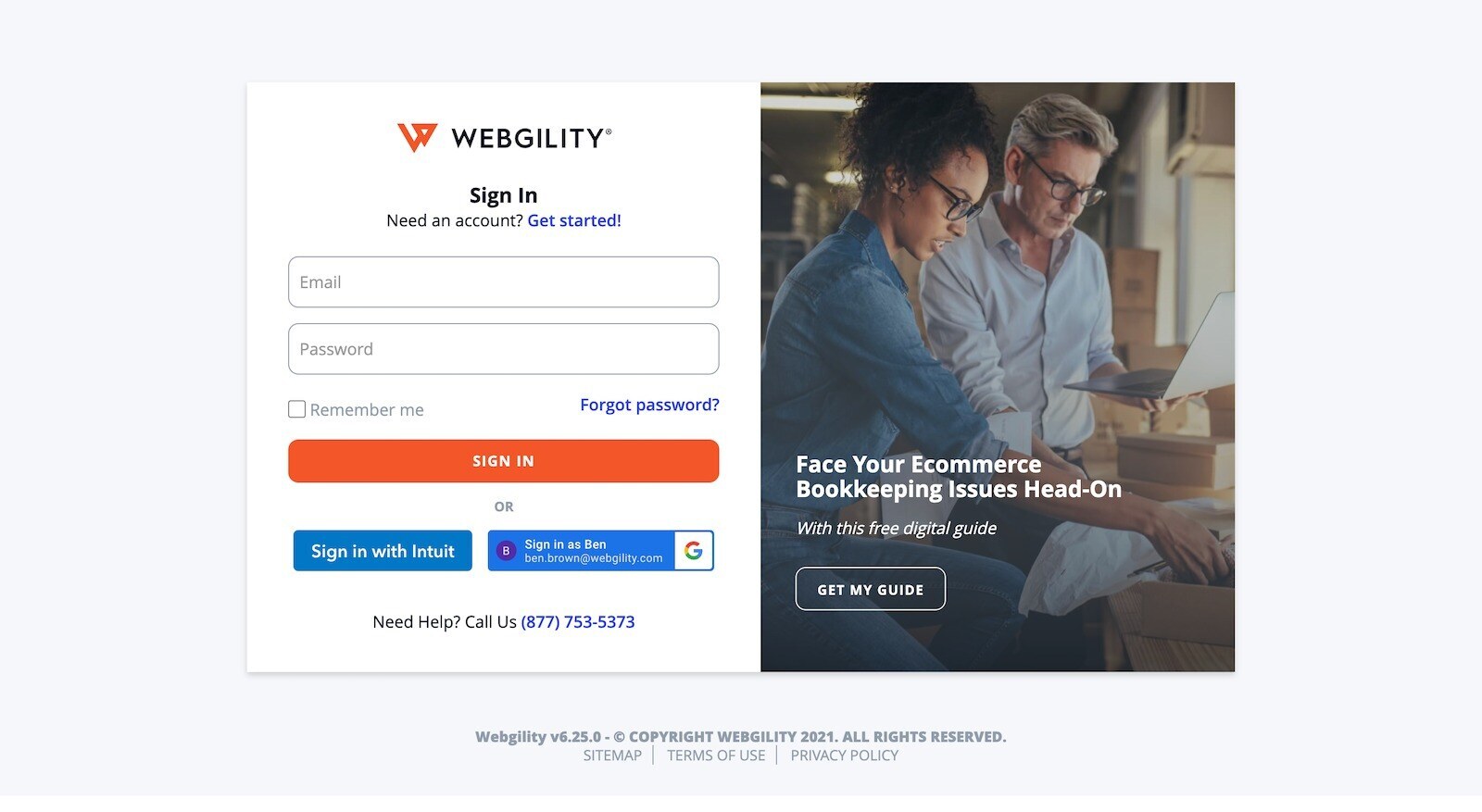 We are excited to announce a new Google sign-in option for Webgility Pro, Webgility Intelligence, and Webgility Portal users. This is a powerful new feature that will allow customers and prospects to log in to Webgility or sign up for a Webgility trial utilizing Google account credentials with just the click of a button. This eliminates the pain of keeping a separate username and password for Webgility, thus making it quick and easy to login.