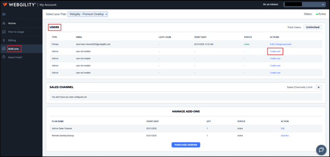 How to Create an addon user for Webgility Desktop via Webgility Customer Portal account