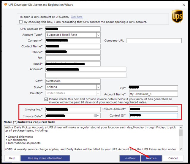 Update the latest invoice details for UPS as shown in the screenshot below.