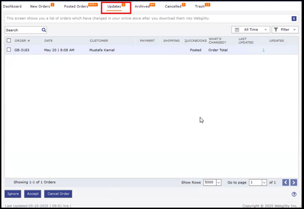 - Search for the order whose updates needs to be resolved.