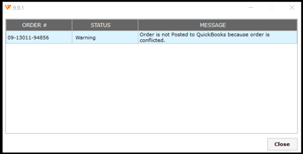 Order is not posted to Quickbooks because order is conflicted