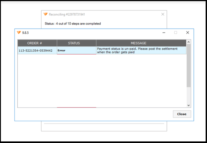 This article applies to users of Webgility Desktop integrated with QuickBooks Desktop who encounter the error “Payment Status is Unpaid. Please Post the Settlement When the Order Gets Paid.†This error usually appears when posting an Amazon Settlement Report through Webgility Desktop and occurs because the corresponding order has not yet been confirmed or marked as paid in Amazon Seller Central, preventing the settlement from posting successfully to QuickBooks.