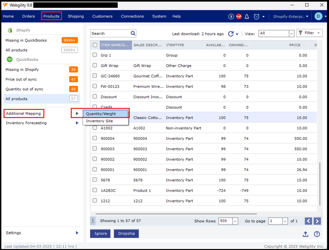 In Webgility Desktop, navigate to the Products in the menu options.